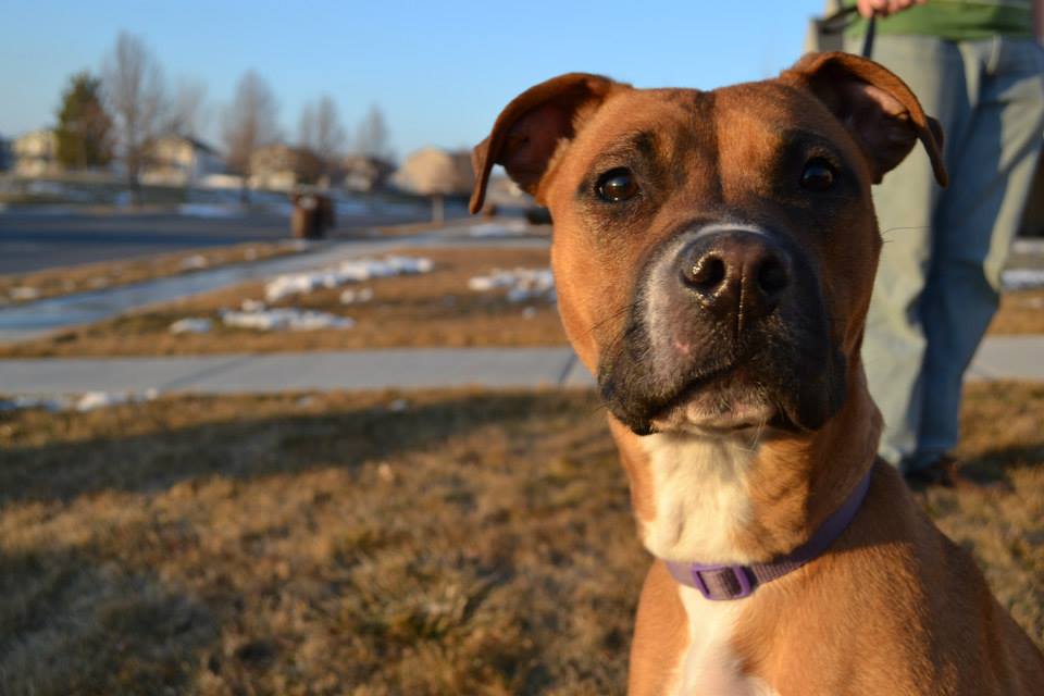 Raja is a sweet and beautiful 9 month old Pit Bull/Boxer mix. She is spayed and current on her vaccines. She is crate trained, potty trained, picking up obedience nicely, learning to walk nicely on a leash and can walk on the treadmill. She is a medium energy pup that would do best in a home that is willing to help her through the last of her puppy years to help her become an awesome adult dog like we know she can be. She is good with all people and kids, and good with dogs, but must go to home either with no dogs or with very social dogs. We have had her in our pack socials here as well as in our off leash socialization classes (to see a video, go here:https://www.facebook.com/photo.php?v=10151932030453424&set=vb.51136993423&type=3&theater), and she has done great. In her previous home she lived with another dominant female that didn’t have very good social skills and they fought quite a bit. So far here we haven’t seen any aggression from her. She is sweet and curious towards other dogs. Which is why we feel she needs to go to a home with no dogs or to a home with well socialized dogs.